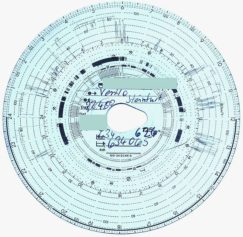 Analogiczne tachografy starszego typu korzystały z okrągłych papierowych tarczek, które kierowca wymieniał raz na dobę. Do dziś można je spotkać w starszych pojazdach.